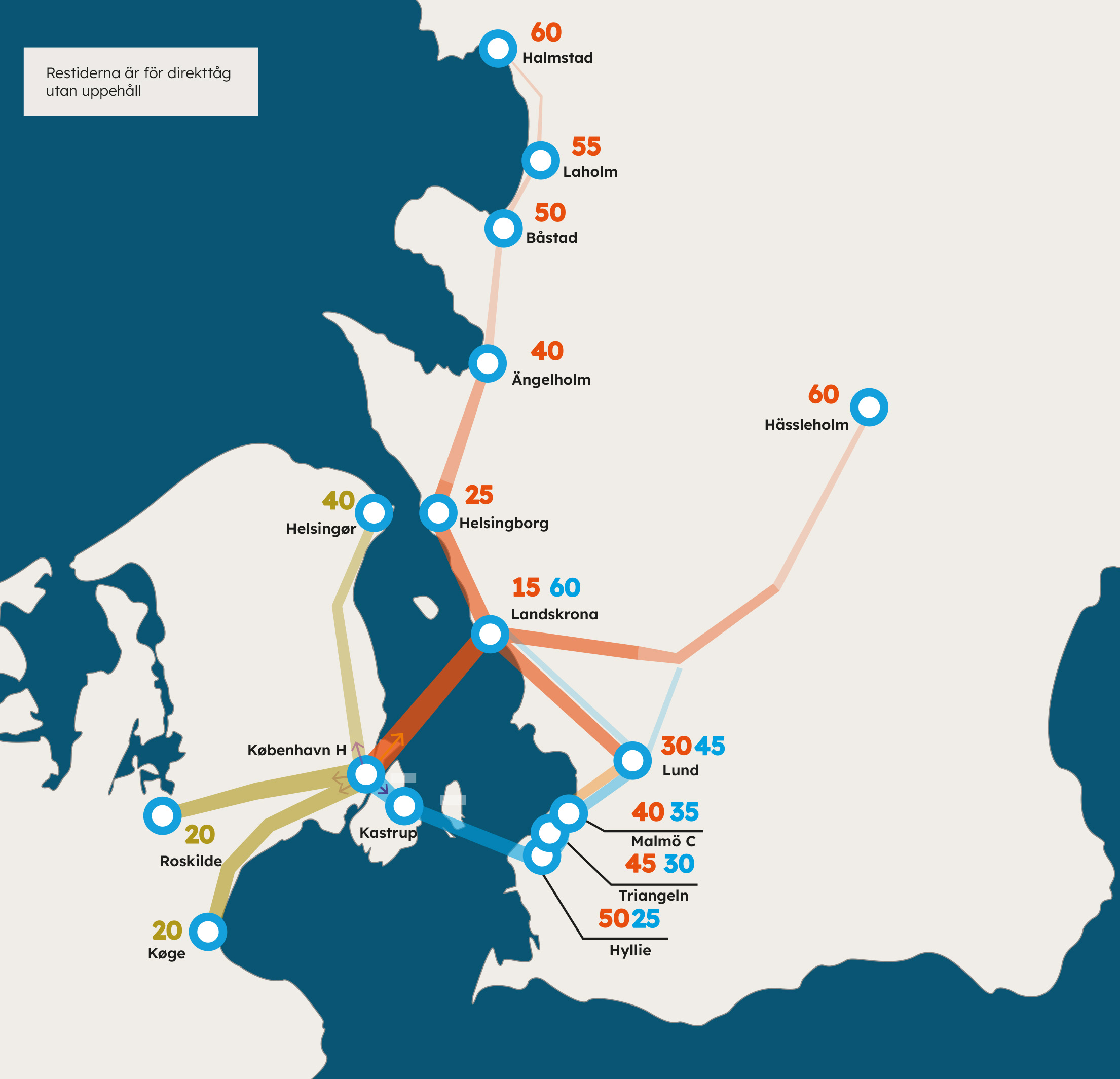 Idag pendlar ungefär 20 000 personer över Öresund mellan arbete och bostad. Cirka 95% pendlar från svensk till dansk sida då den danska huvudstaden Köpenhamn är motorn i Öresundsregionens arbetsmarknad. Från svensk sida är det idag Malmö-Lund-regionen som har pendlingstider med tåg på under en timme till centrala Köpenhamn. För att utöka och utveckla arbetsmarknadsregionen behöver fler få pendlingsavstånd till Köpenhamn. Därför behöver en ny Öresundsförbindelse skapa en snabb förbindelse mot Köpenhamn från de delar av den svenska sidan som idag ligger utanför pendlingsavstånd.